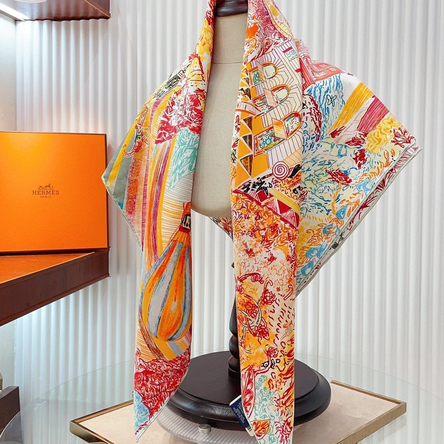 Les Folies Du Faubourg Scarf 90 CM In Colorful Silk Twill 304376