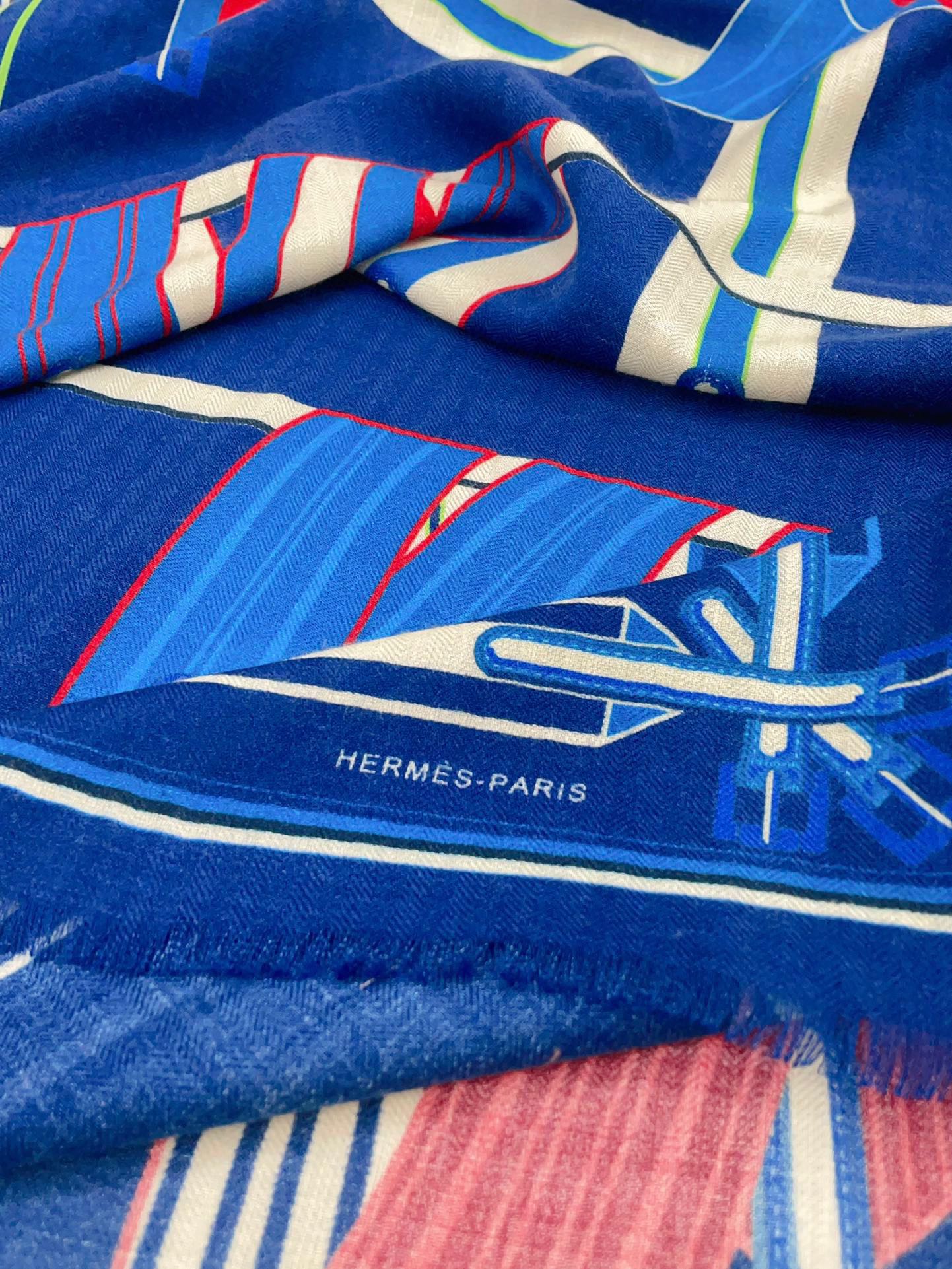 Les Sangles En Finesse Rectangle Scarf 180 CM In Dark Blue Colorful Cashmere And Silk 373657
