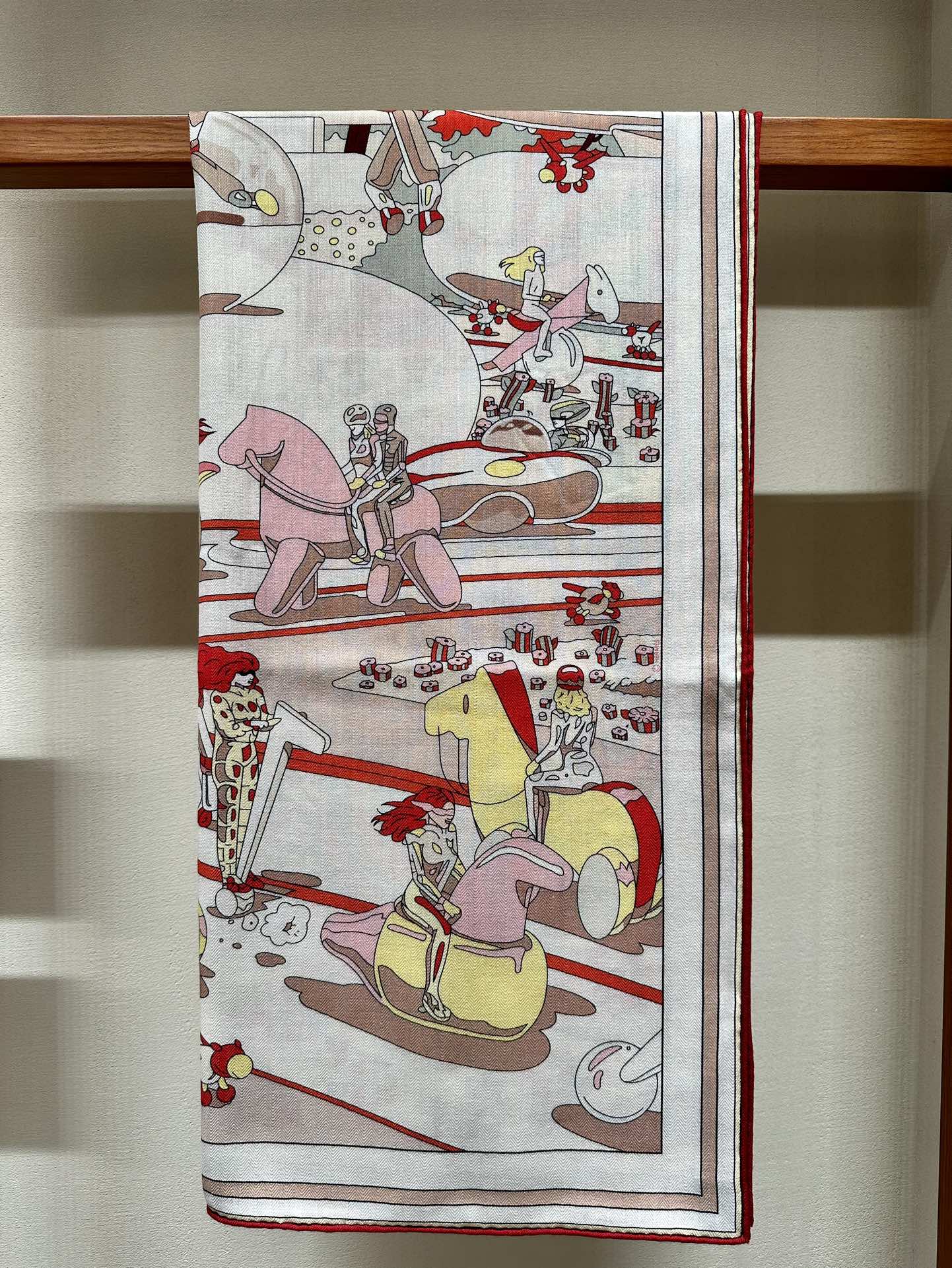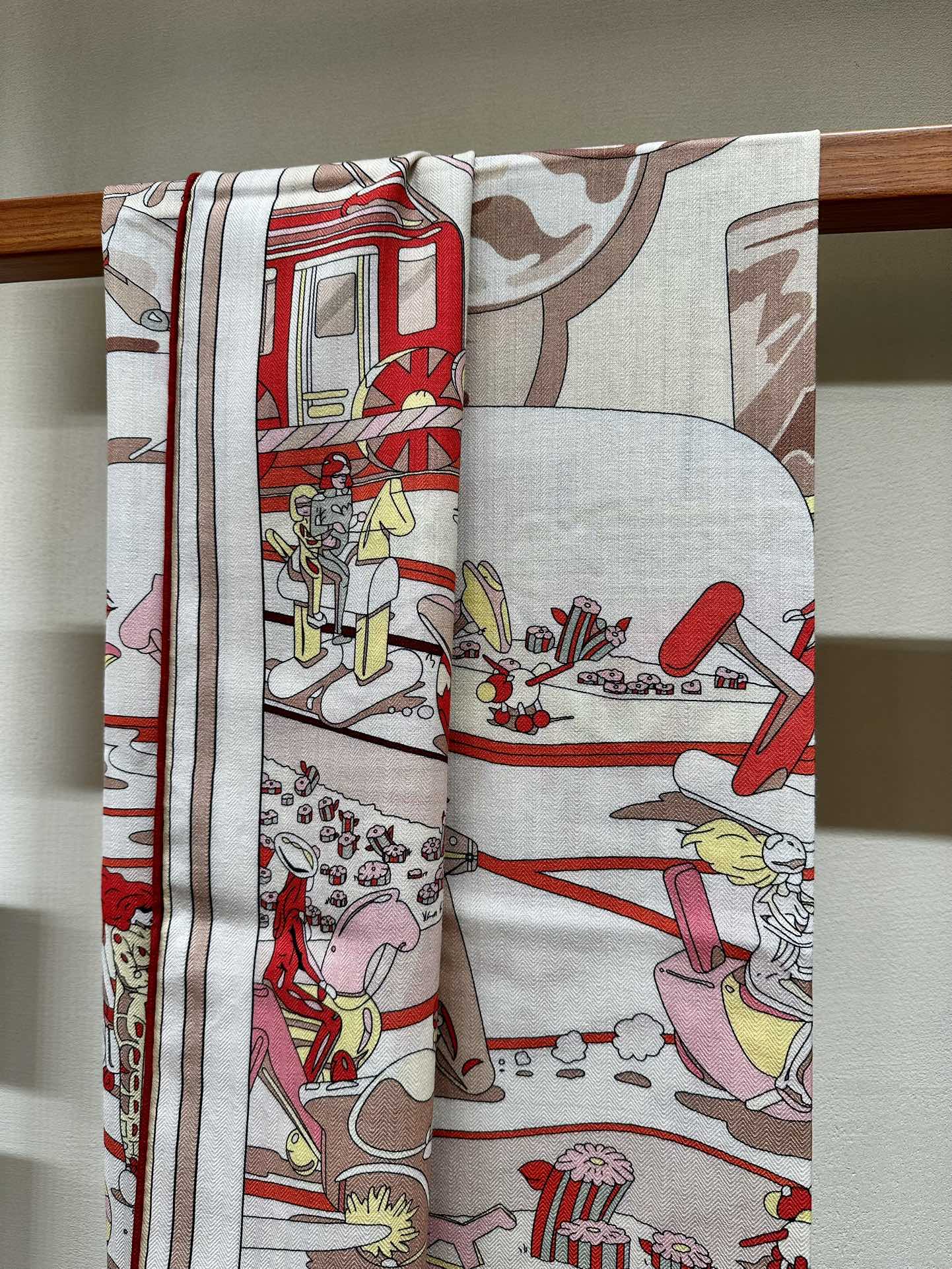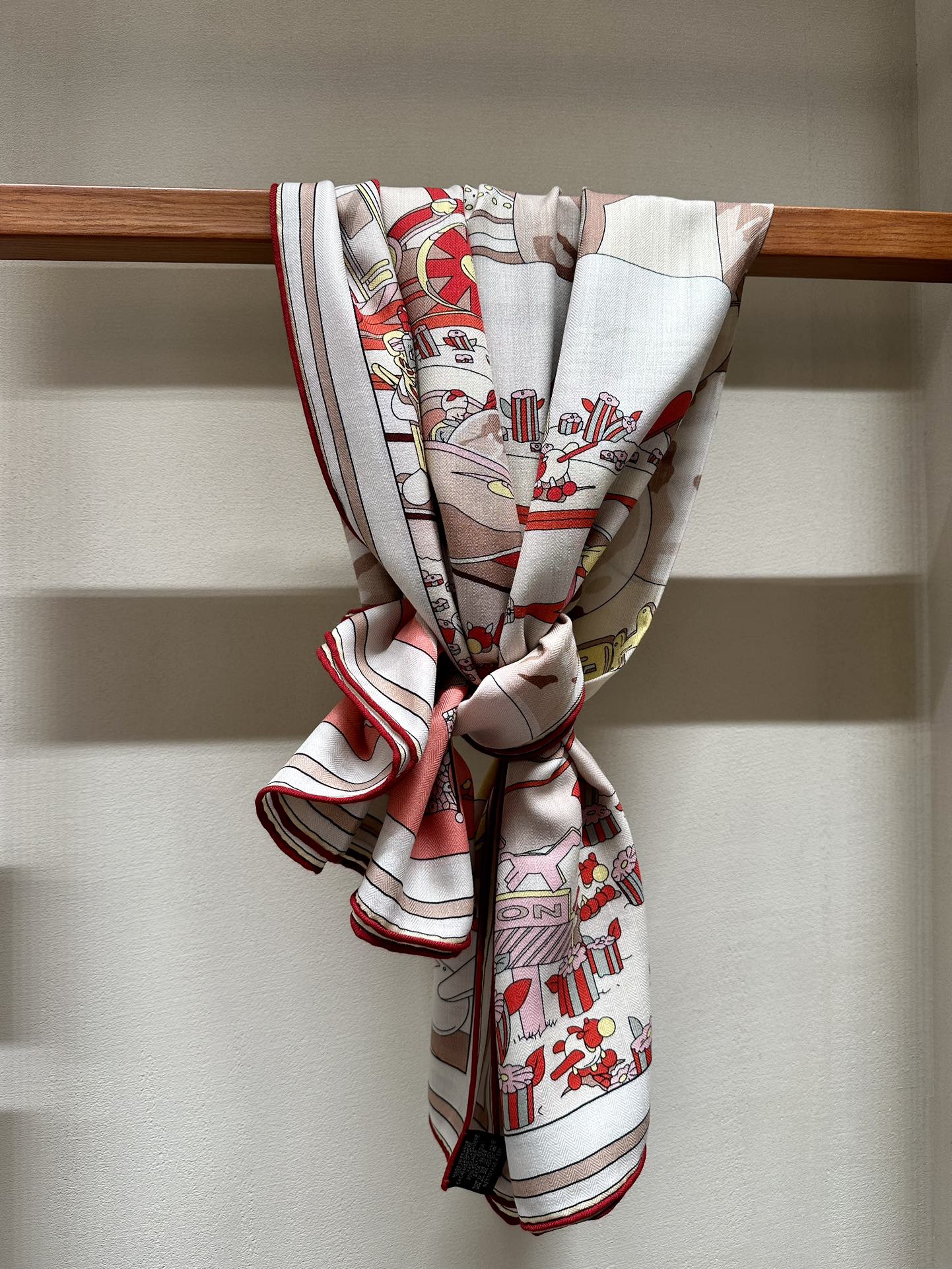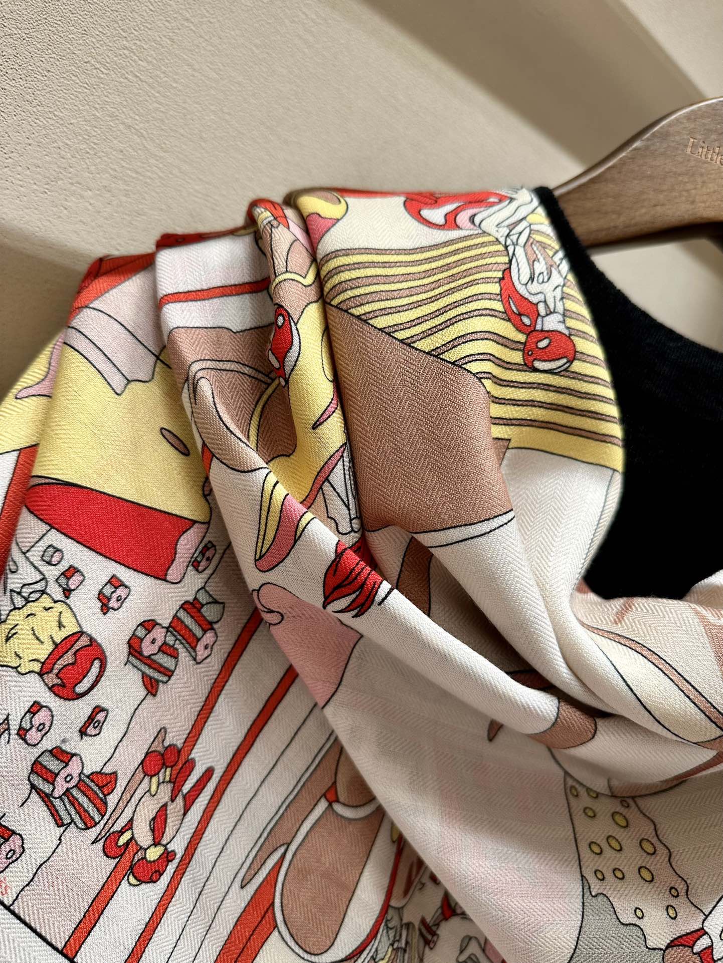 Locomotion Shawl 140 CM In Red Colorful Cashmere And Silk 384145