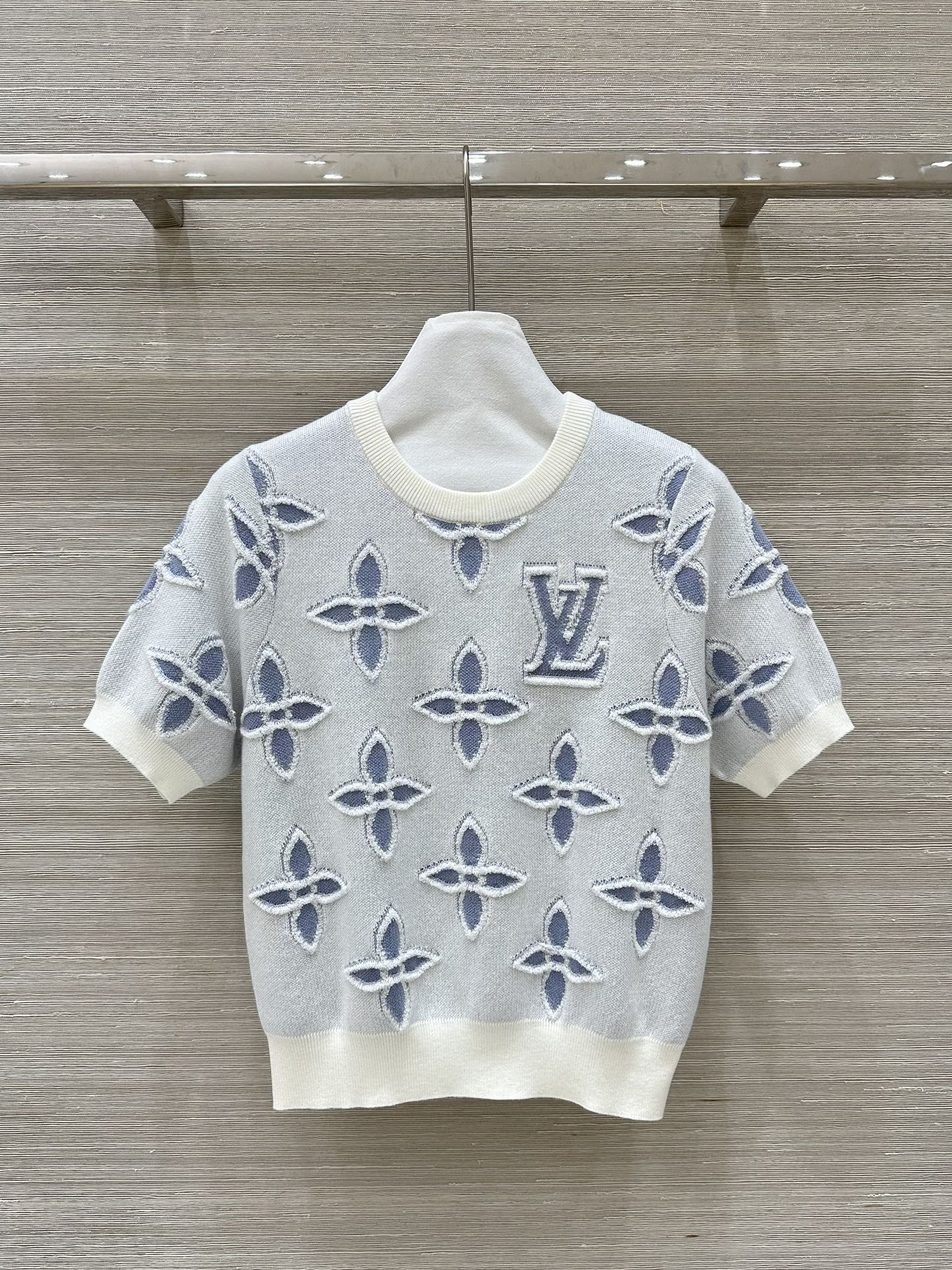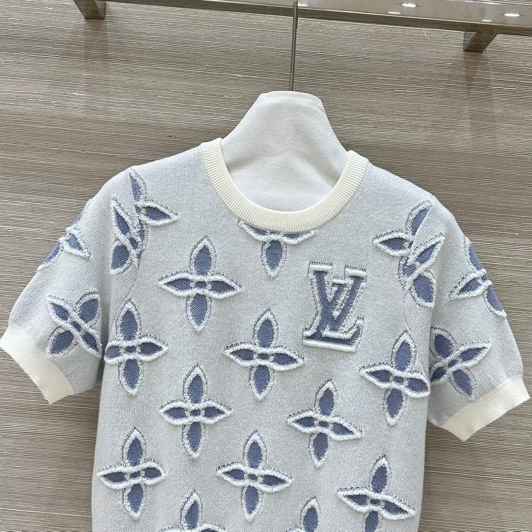 LV 25 Knitted Short-Sleeved Top Blue Wool