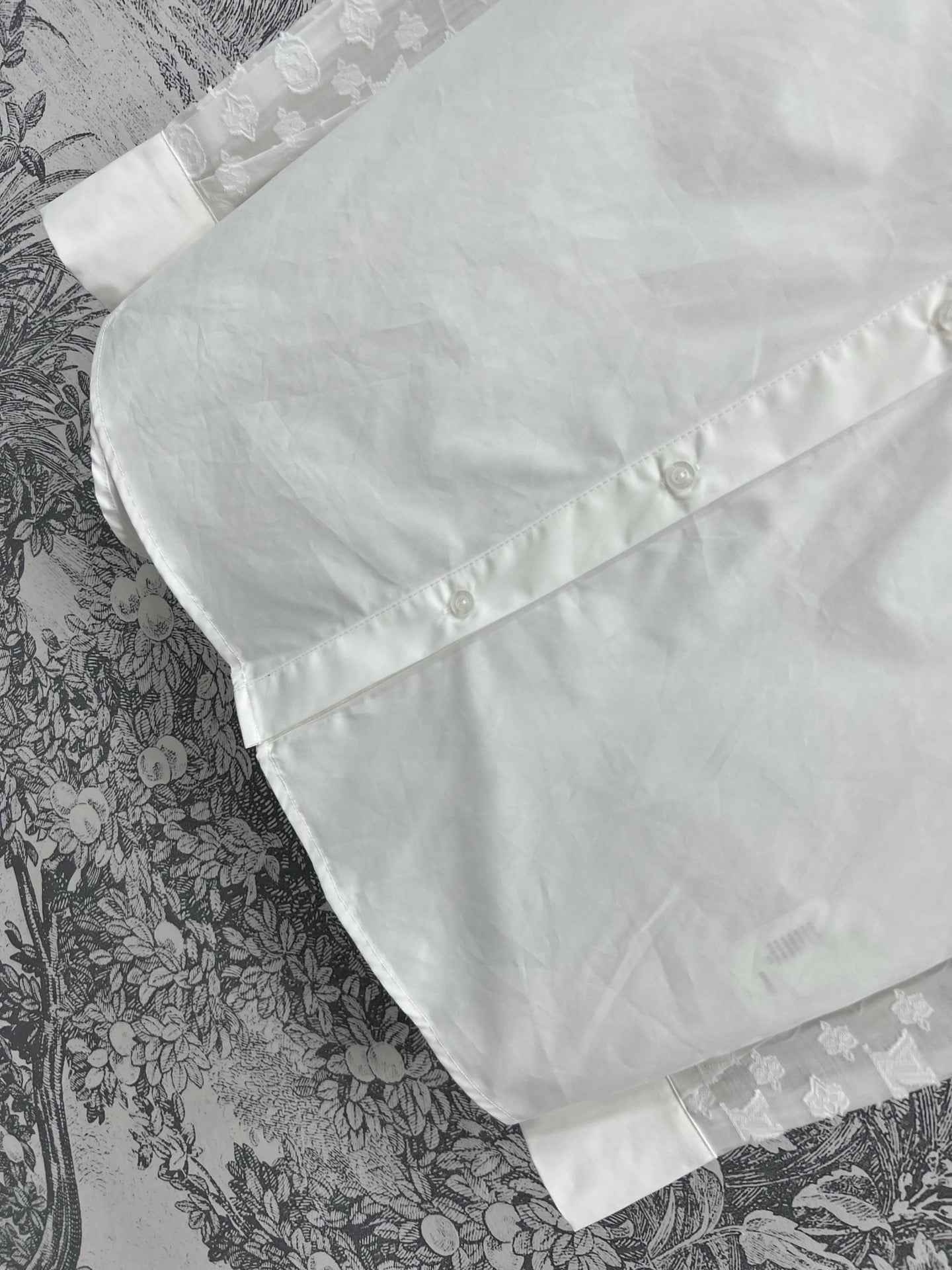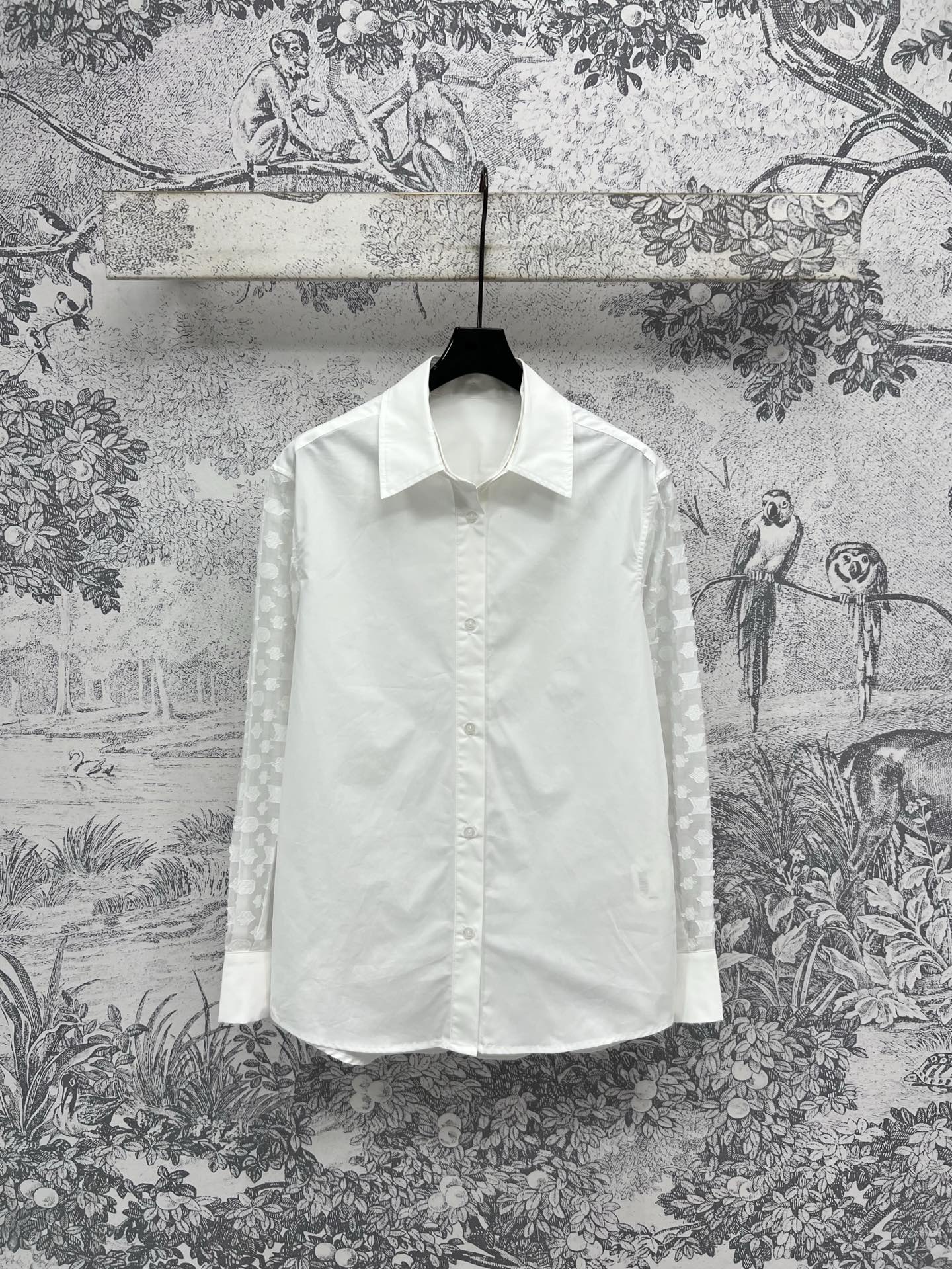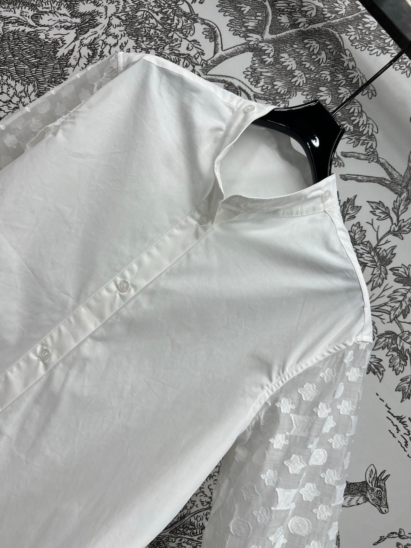 LV 25 Splicing Perspective Jacquard Monogram Sleeve Shirt White Cotton
