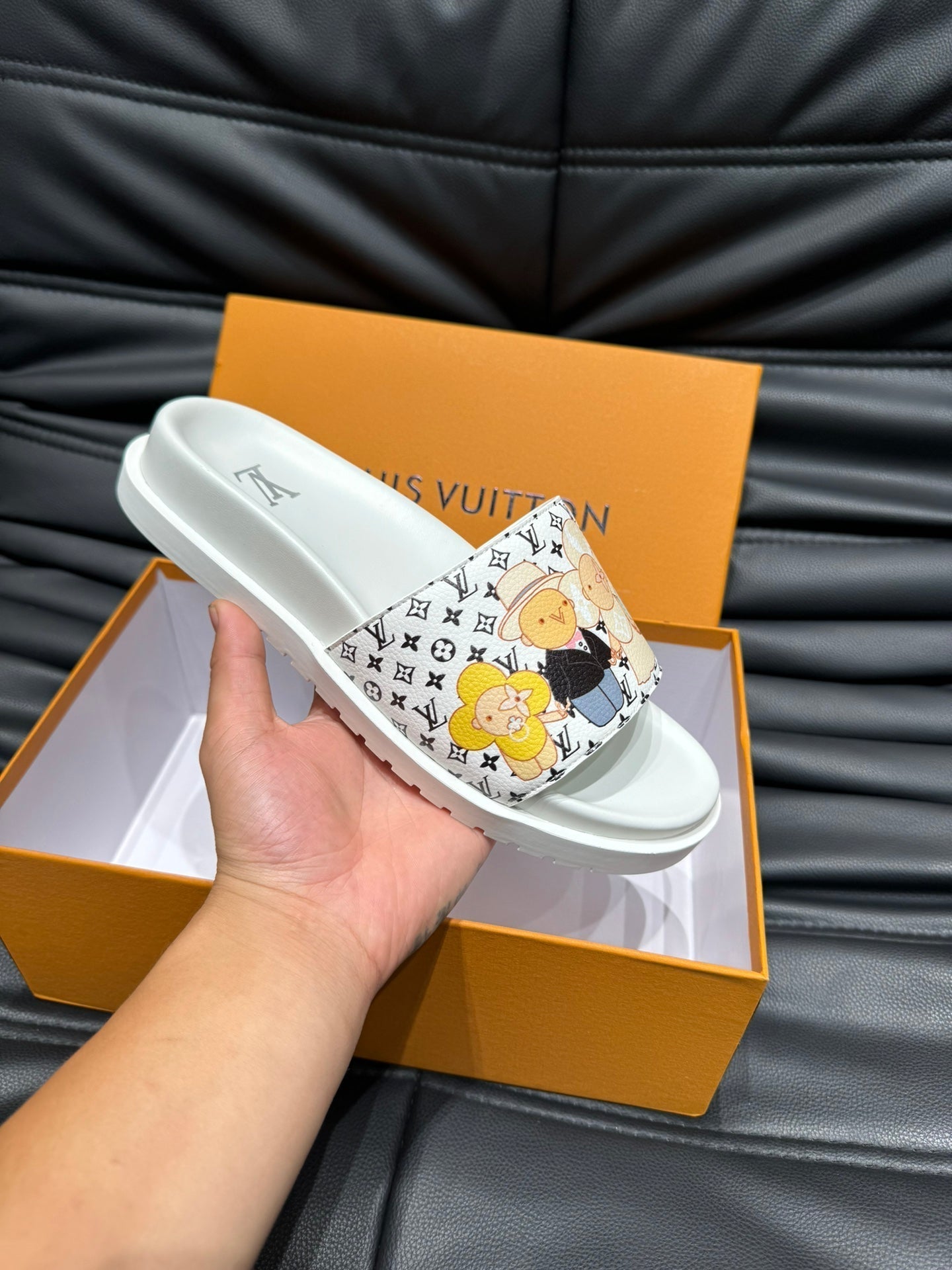 LV SLIPPERS IN WHITE MONOGRAM CALFSKIN