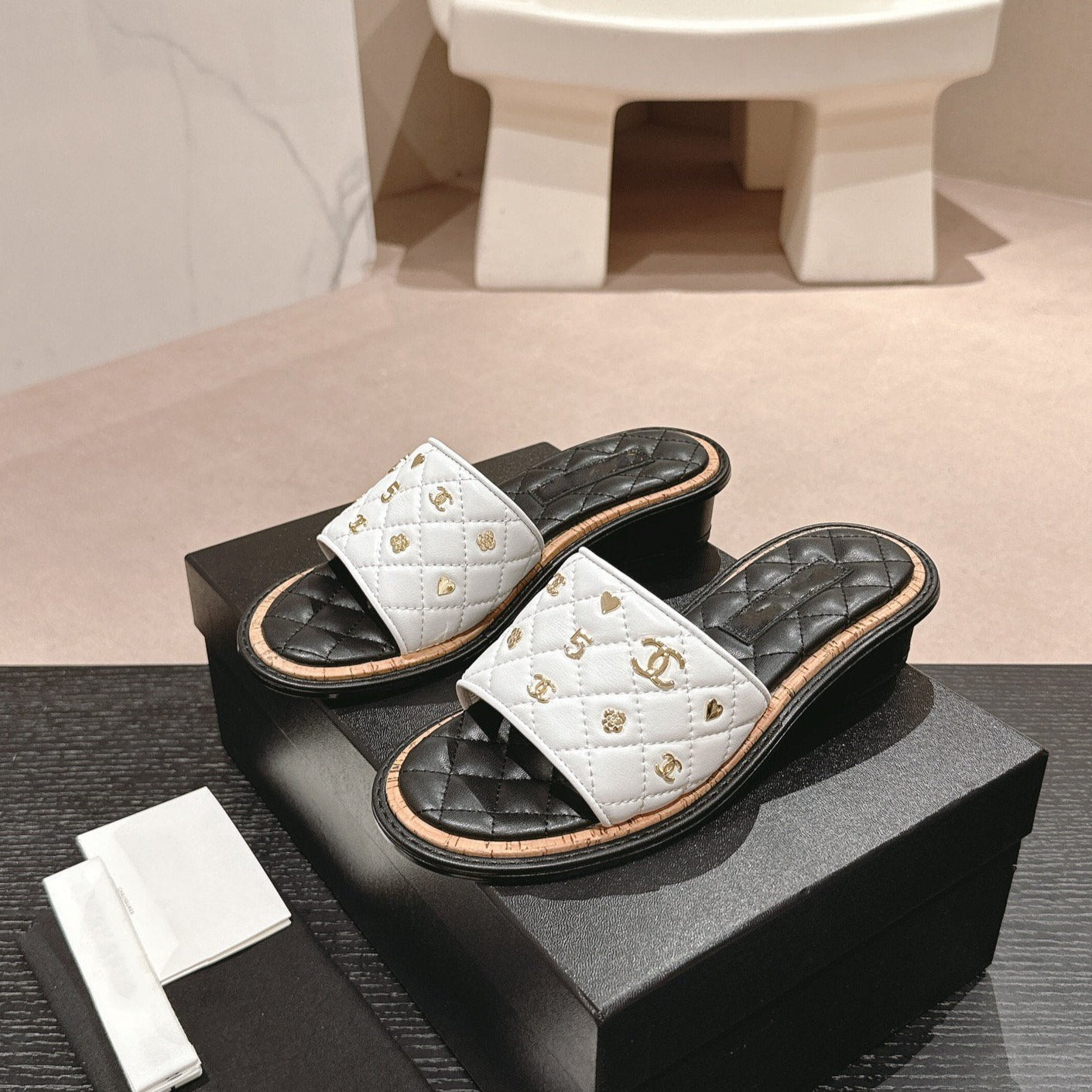 mule sandal 40 white black quilted calfskin
