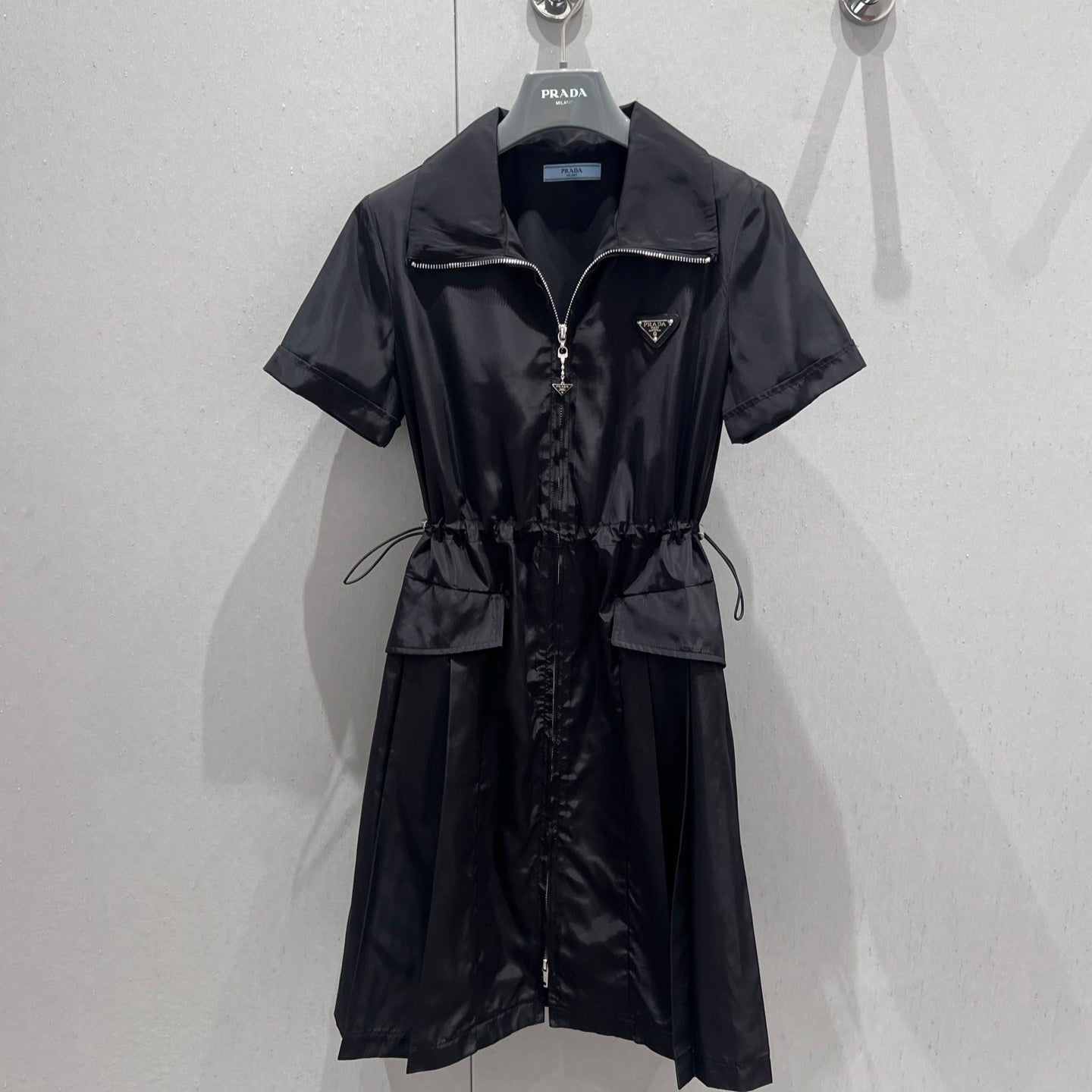Prada 25 Short Sleeve Zipper Dress Black Polyester 218738