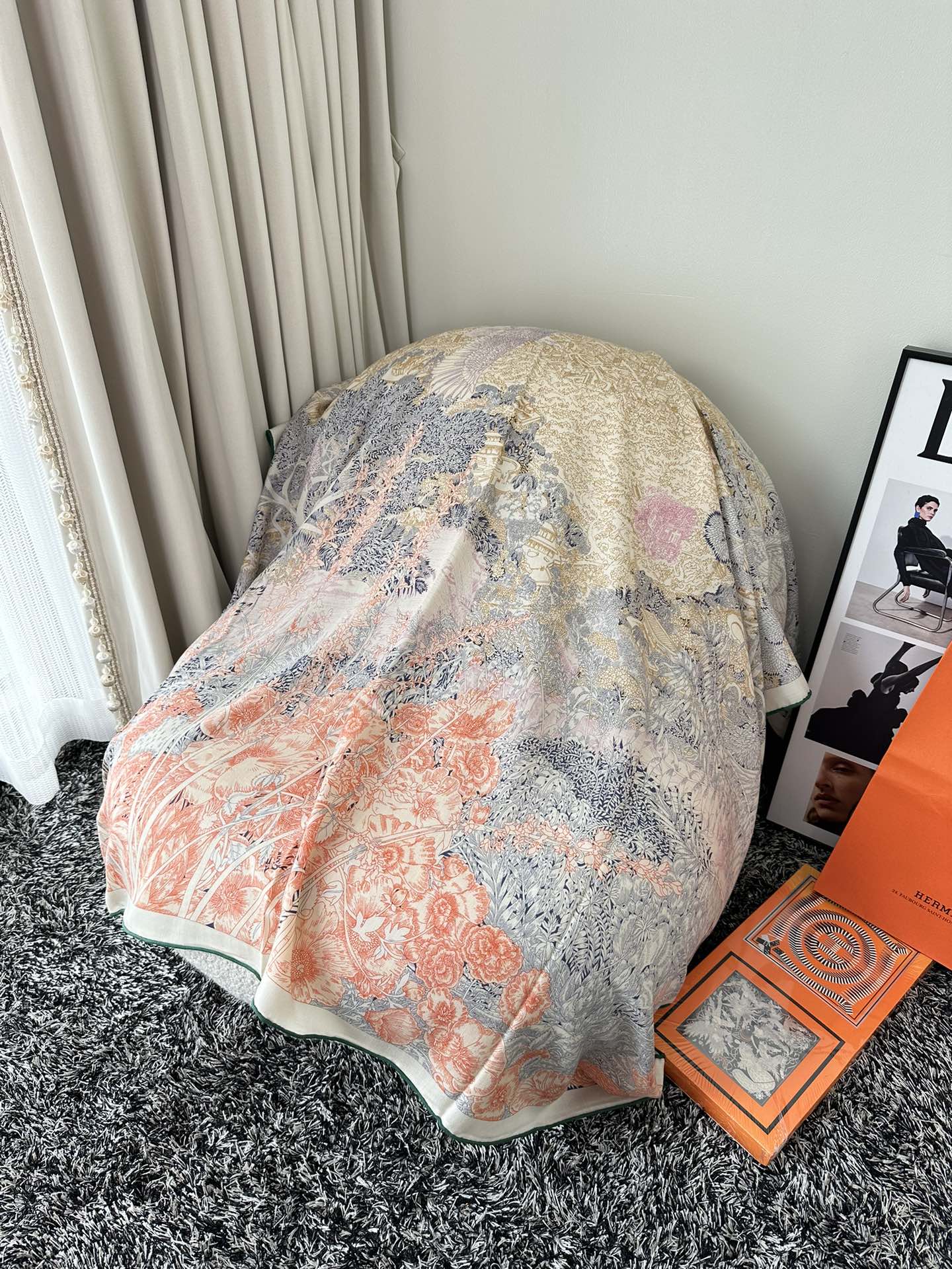 Retourala Nature Hermes Scarf 140 CM White Pink Colorful Silk