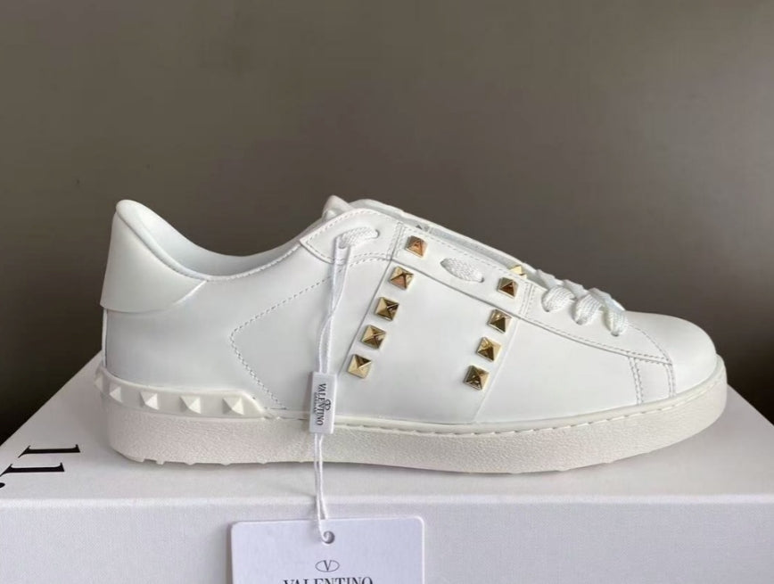 Rockstud Untitled White Calfskin Gold Embellishments