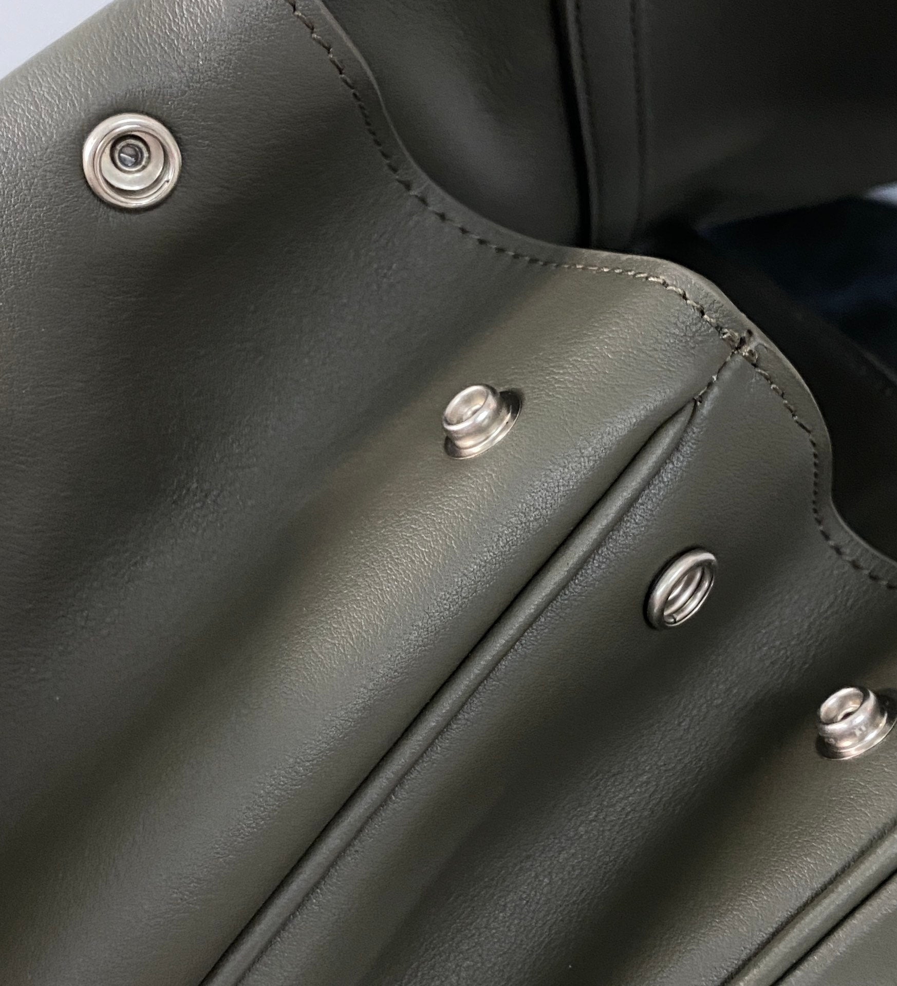 RODEO LARGE BAG 40 IN KHAKI GREEN SMOOTH CALFSKIN SILVER HARDWARE
