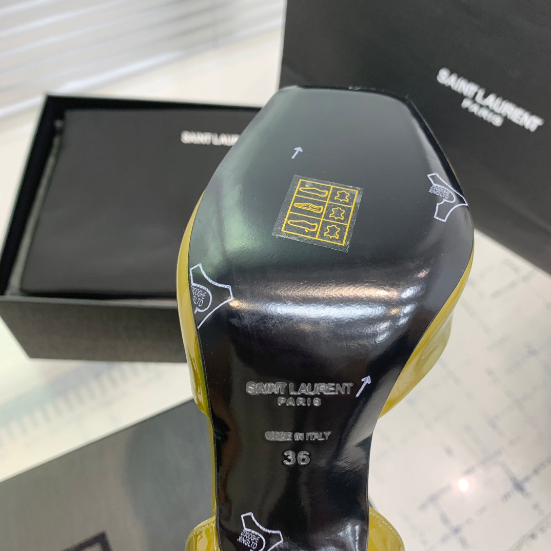 SL FISH MOUTH SANDAL PUMP LEMON POLISHED CALFSKIN