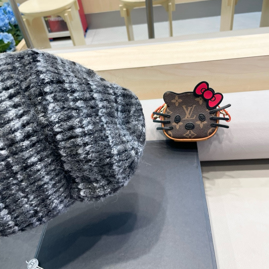 STRIPED KNITTED HAT IN DARK GRAY WOOL 424516