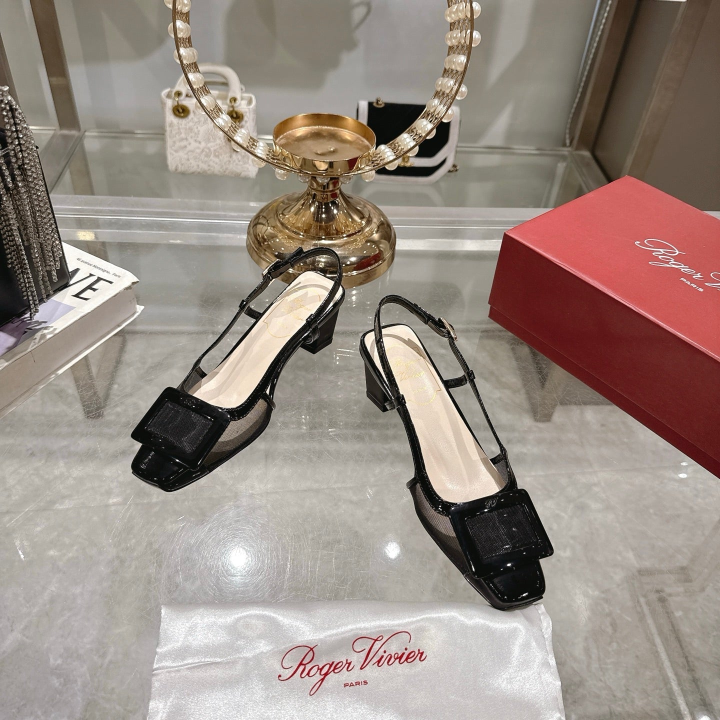 Viv 25 Slingback Black Mesh Italian Leather 300780