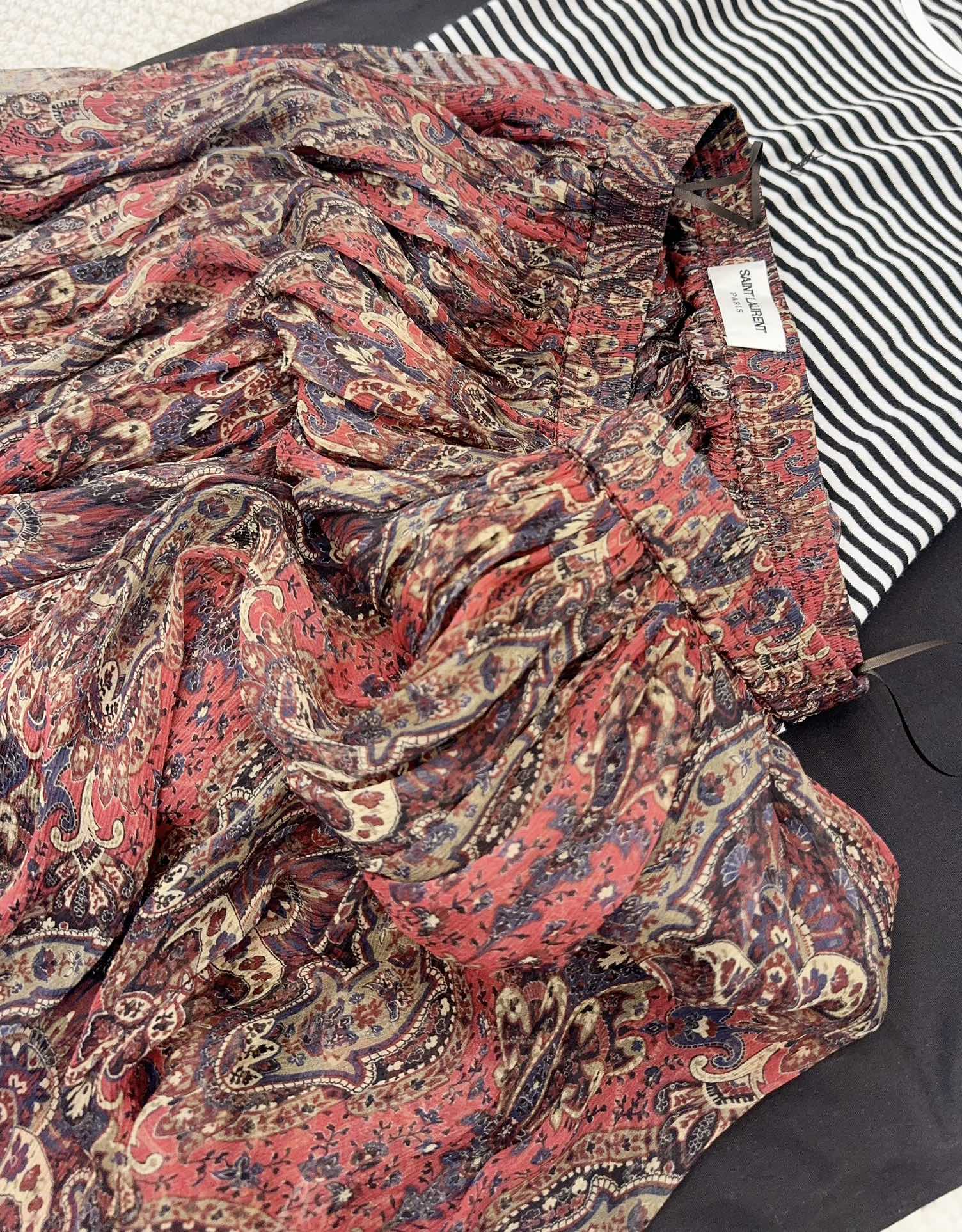 YSL 2025 Printed Skirt Red Silk