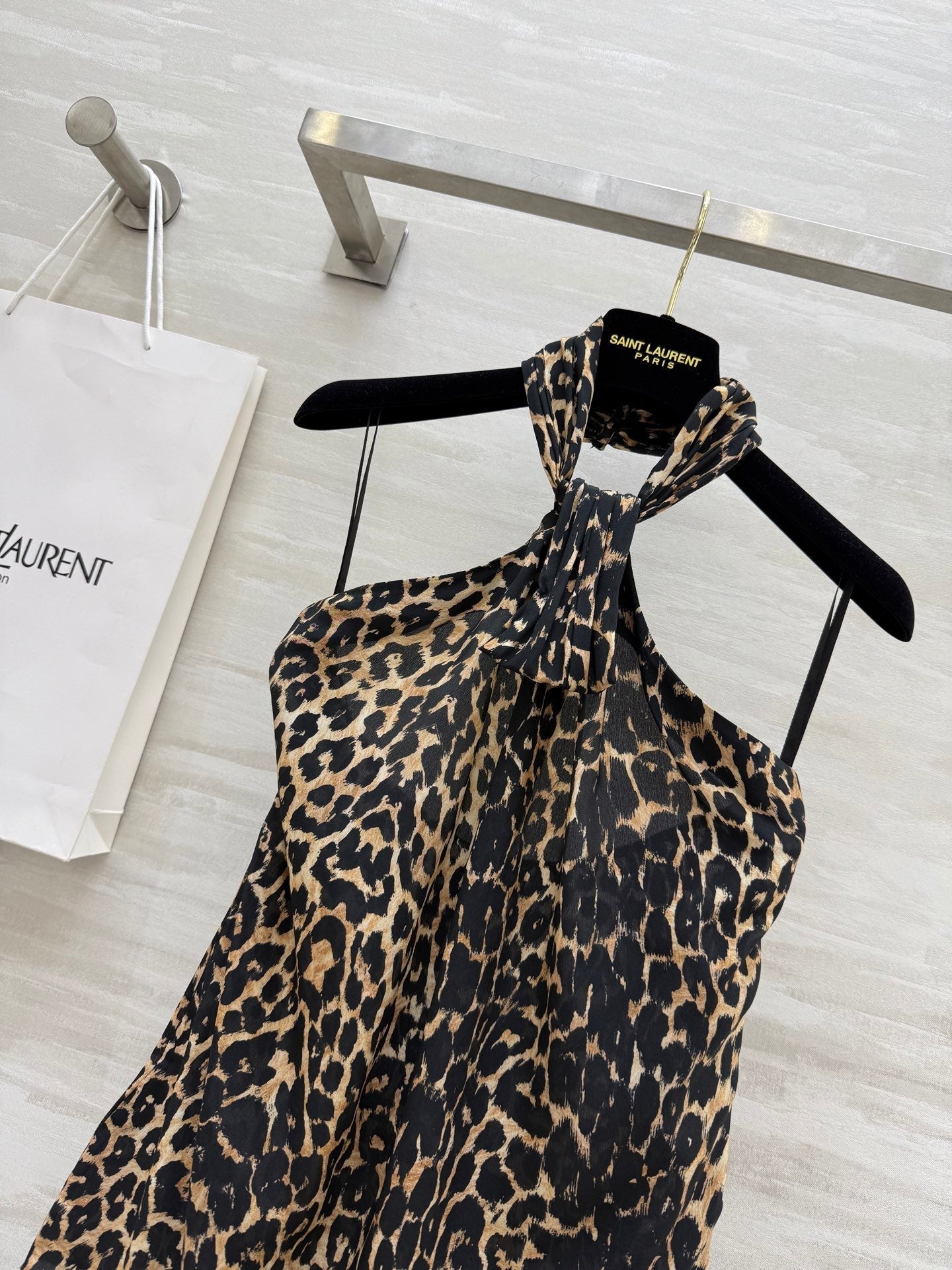 YSL 25 Halter-neck Suspender Vest Leopard Silk