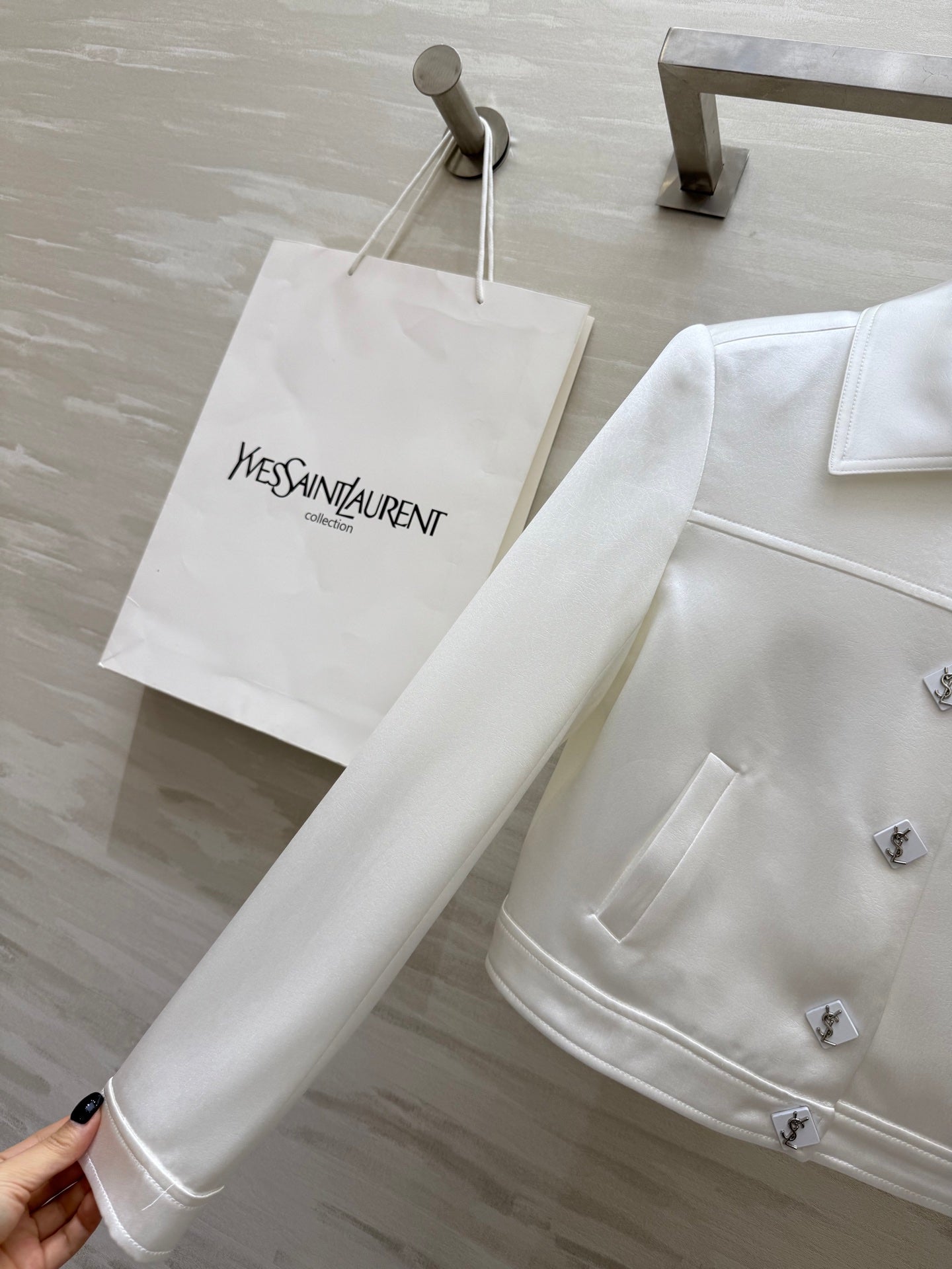 YSL 25 Short Jacket White Acetic Acid Cracked Fabric