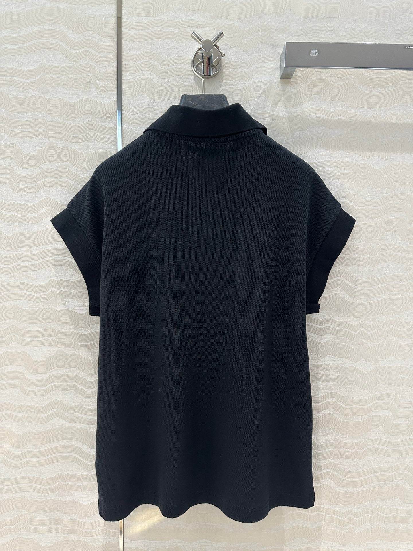 YSL Polo Collar T-shirt Black Cotton Polyester