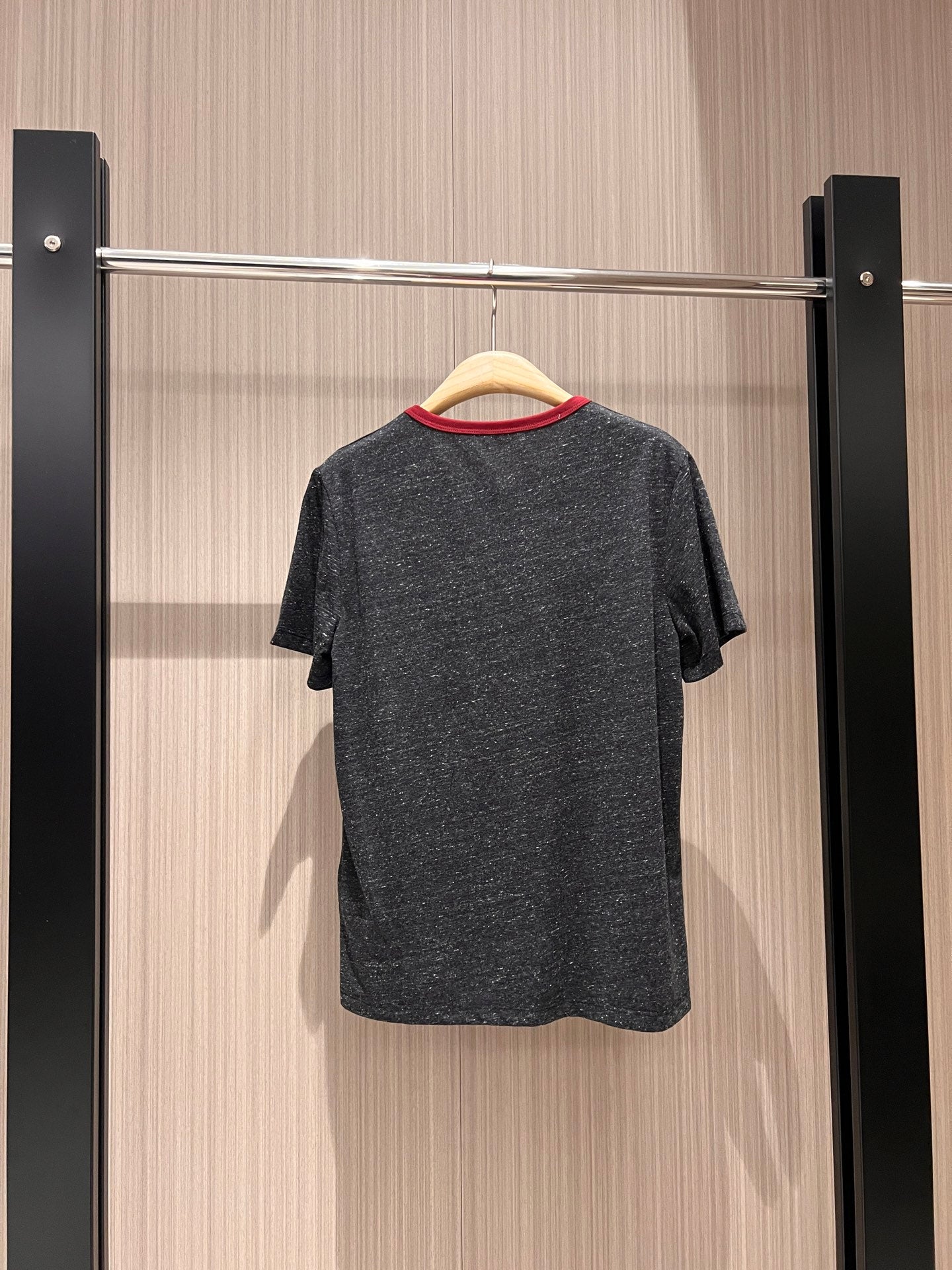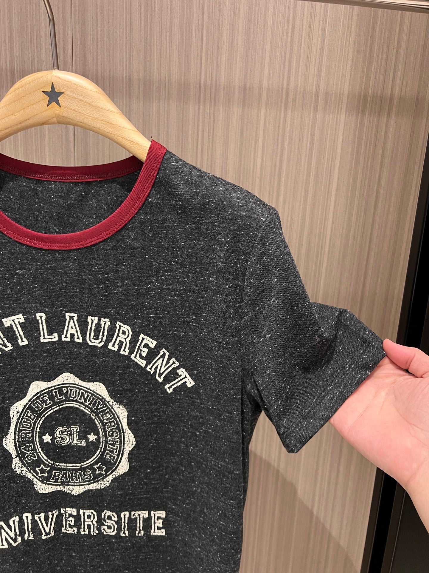 YSL Red Collar Logo Badge T-shirt Gray Cotton
